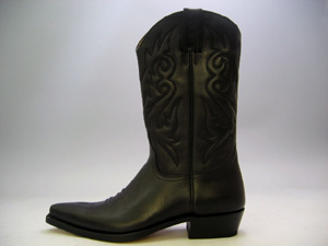 シンプルな単色のウエスタンブーツの登場です。 こちらはスペインの代表的なブランド「SANCHO」の定番のラインになります。 ウエスタンブーツですが、メイドイン スペインなだけにヨーロッパ的な雰囲気漂うスタイリッシュなデザインになっております。 オーソドックスなブラックベースですので流行に関係なく、作りもしっかりしてますので、長く 長~く履く事が出来ます。 上質なレザーですので履き込むほど足に馴染んで良い味が出てきます。